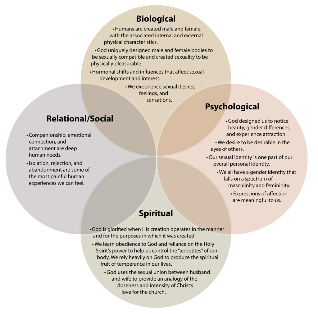 - What does this statement, “all humans are sexual beings” mean to you? How does reading the list of ways God’s design for sexuality is broadly shown (biologically, emotionally, relationally, and spiritually) effect the way you view sexuality?